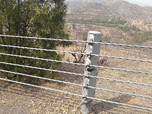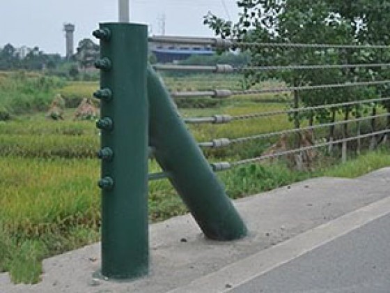 纜索護欄是柔性護欄的主要代表形式,它是一種以數根施加初張力的纜索固定于立柱上而組成的結構,它主要依靠纜索的拉應力來抵抗車輛的碰撞,吸收碰撞能量。纜索護欄屬柔性結構,車輛碰撞時纜索在彈性范圍內工作,可以重復使用,容易修復。立柱間距比較靈活,受不均勻沉陷的影響較小。