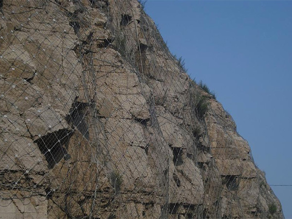 鋼絲繩網又名邊坡防護網,主要分為主動防護網系統和被動防護網系統。鋼絲繩網是以高強度鋼絲繩柔性網(菱形鋼絲繩網、環形網、高強度鋼絲格 柵)作為主要構成部分.并輔以錨桿、支撐繩等配件構成整個系統。以覆蓋、緊固坡面的方式來防治坡面巖石崩塌、滾落、爆破飛石等危害